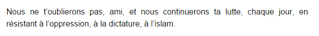 Le CCIF dénonce la passivité des pouvoirs publics, puisqu’il apparaît désormais possible de soutenir publiquement l’auteur d’un acte criminel.