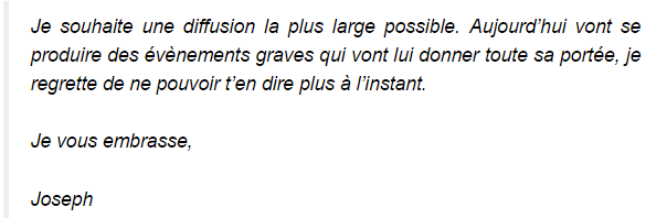 Joseph Scipilliti avait envoyé un mail le matin du drame à Christine Tasin, présidente du mouvement ouvertement islamophobe Résistance Républicaine. Il écrivait à propos de son « testament »: