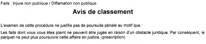 La plainte que nous avons pu nous procurer sera donc enregistrée le 17 juin à 14h50. Fatima fait retranscrire également aux gendarmes ses trois vidéos et donne l’attestation d’un autre docteur présent au cabinet la veille et témoin de la scène, qui a confirmé à BuzzFeed News le déroulé de la scène. Mais le 4 novembre dernier, le parquet de Chambéry, qui n’a pas donné suite à nos appels, décide de classer sans suite.